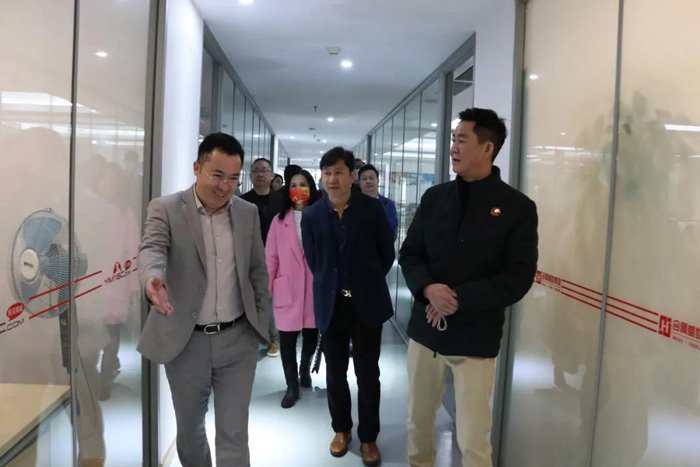 在豐華集團(tuán),走訪團(tuán)隊得到副主席盧沛芳的熱情接待,先后參觀公司各個功能區(qū)域。在公司部門負(fù)責(zé)人的介紹下,走訪團(tuán)隊詳細(xì)了解過去一年企業(yè)的發(fā)展形勢、地產(chǎn)項目、前景規(guī)劃等方面,悉心傾聽企業(yè)所思所急及對商會工作的意見建議。