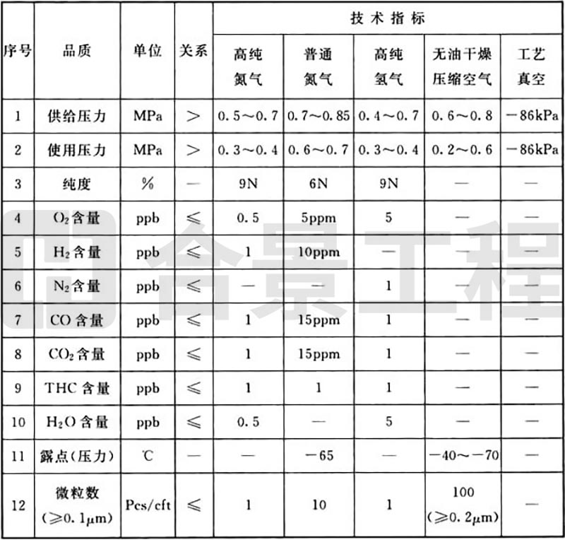 表B.0.1 工藝動力品質(zhì)(氣體)要求