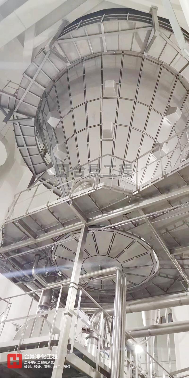 下圖為飛鶴乳業(yè)廠房凈化項(xiàng)目施工中效果圖: